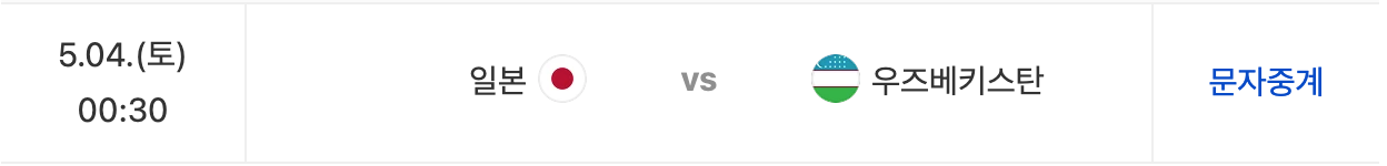 | 05.04(토) 00:30 | 일본 vs 우즈베키스탄 |