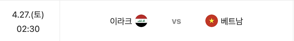 | 04.27(토) 02:30 | 이라크 vs 베트남 |