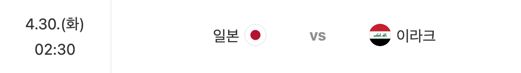 | 04.30(화) 02:30 | 일본 vs 이라크 |