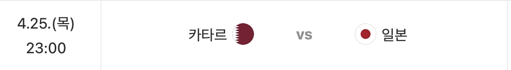 | 04.25(목) 23:00 | 카타르 vs 일본 |