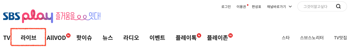 2) 아래 사진처럼 라이브 메뉴로 이동합니다.